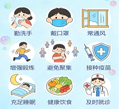 接种流感疫苗——最有效的预防方式:每年流感病毒都会变异,及时接种当季流感疫苗,能显著降低感染风险和重症概率,老人、孩子、孕妇、慢性病患者优先接种。